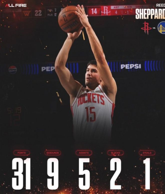 31+9+5打爆勇士!谢泼德迎生涯之夜!火箭14分大逆转,库里伤退